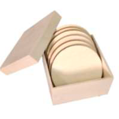 Caja con posavasos redondos. Medida: 11x11x6 cm.