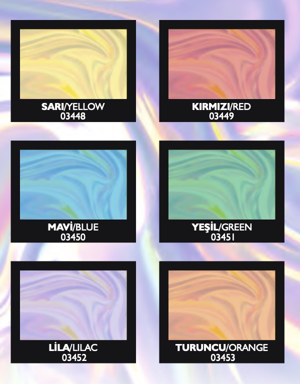 | cartajan | 448 Yellow, 449 Red, 450 Blue, 451 Green, 452 Lila, 453 Orange |