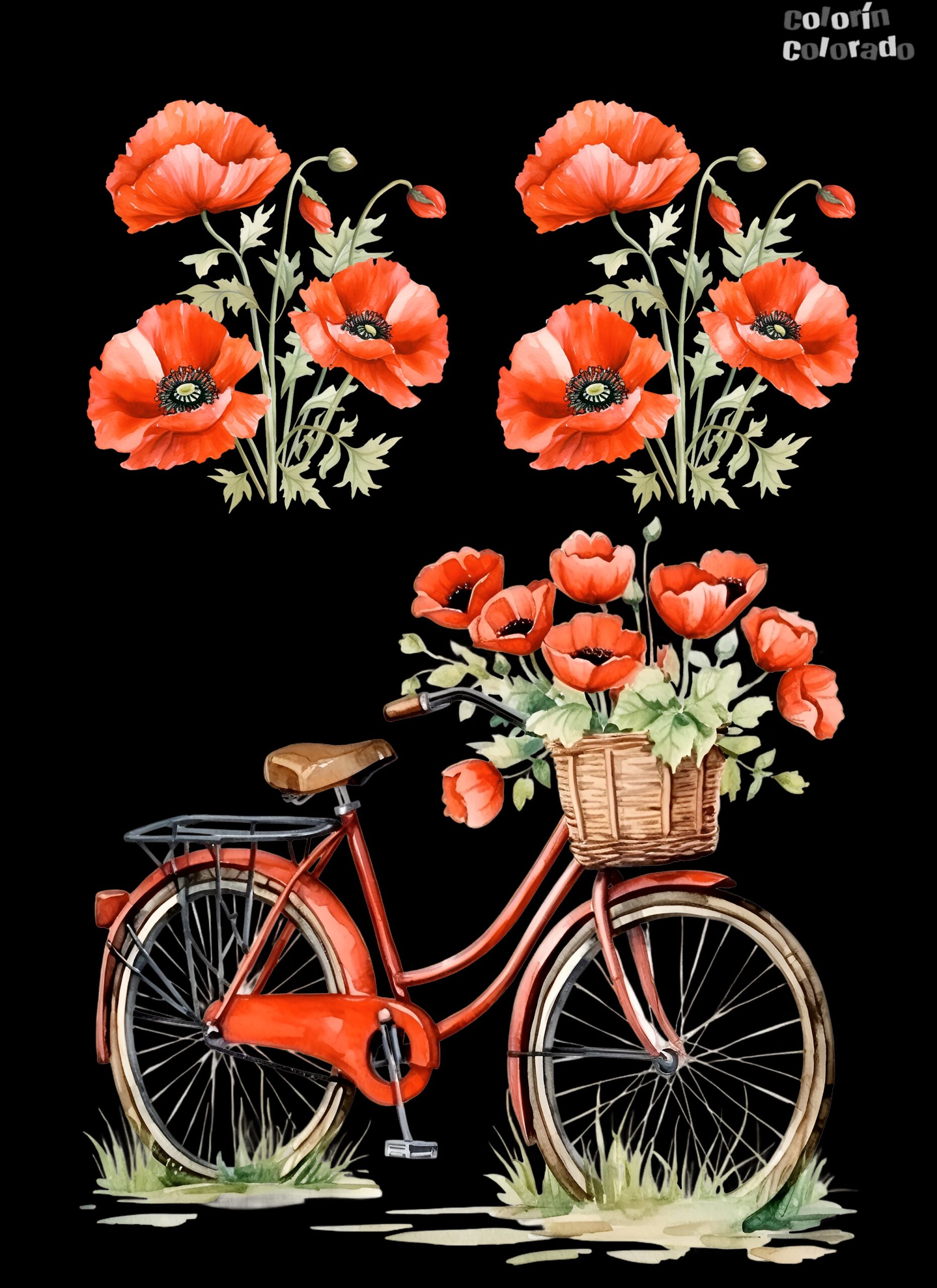 Transferencia grande de bicicleta de amapolas. Medida: 20×30 cm.