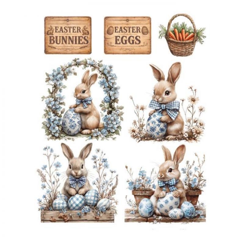 Transferencia UV conejos de Pascua. Medida: 14×17 cm.